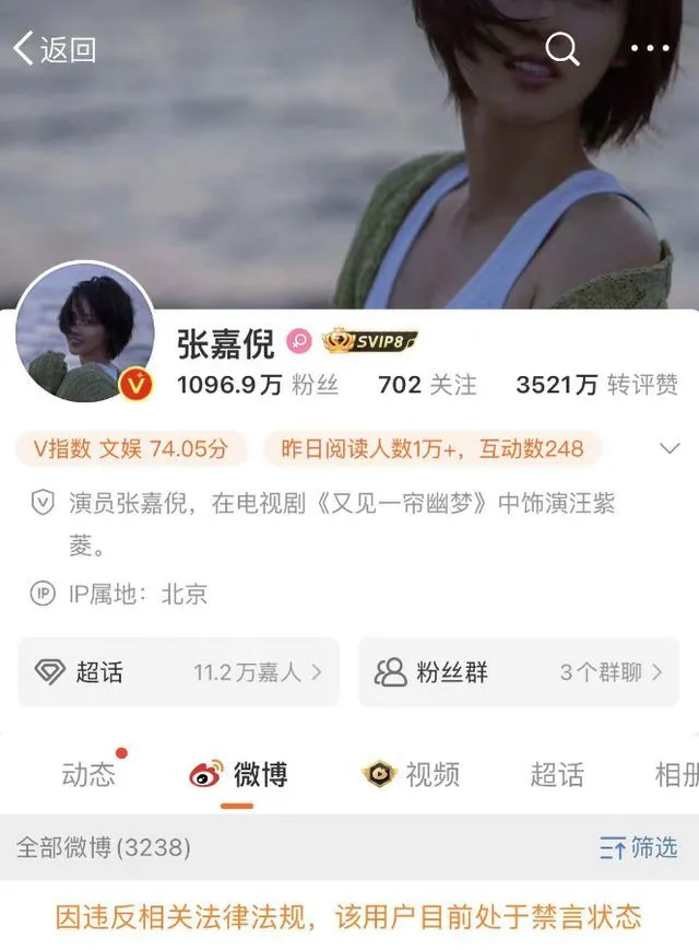 11月1日晚间,Angelababy及张嘉倪微博账号主页显示,“因违反相关法律法规,该用户目前处于禁言状态”。此前双方抖音账号均已被禁言,抖音违规处罚说明显示,“该用户因违反《抖音社区自律公约》的相关规定被禁言”。