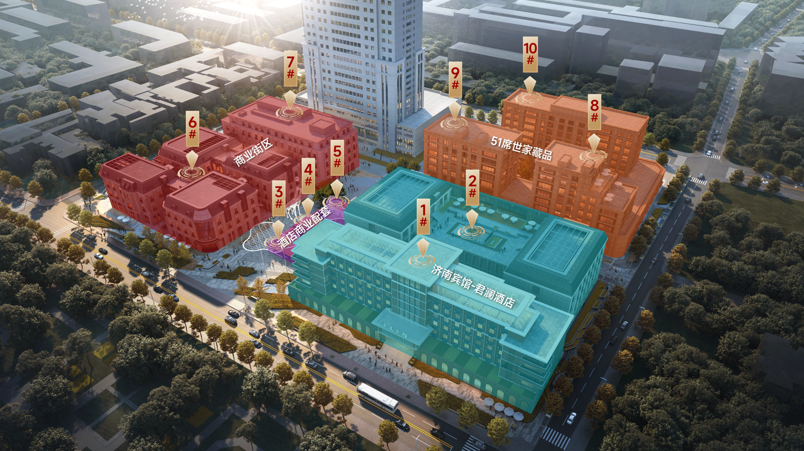 项目恪守“保护为主、修旧如旧、建新如旧”的更新理念,以经典海派风情为底蕴,深度融合商业、文化、居住与酒店功能,打造济南文商旅共融型民国风貌街区。规划涵盖君澜酒店(1#、2#)及配套商业(3#、4#、5#)、海派风情商街(6#、7#)以及高端私邸组团(8#、9#、10#),以“一户一案”定制精装、济南首家24小时酒店式尊崇服务,共同铸就传世级资产标的:真正定制化世家私邸,从空间格局、材质臻选到艺术陈设,皆可量身打造,承载家族文化与时代品味;前所未有的尊享服务体系,从专属私人管家至全时礼宾响应,从容涵养世家生活的日常与荣光;仅献51席稀世资产,敬呈齐鲁世家,共鉴时代珍藏,续写世家门第荣耀传奇。